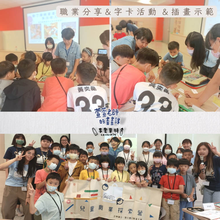 萱萱老師出發臺北教育大學啦!感謝主辦單位 兒童職業探索營 在今年暑假舉辦這麼有趣的營隊!我們在好幾個月前就開始準備教案跟來回確認內容,職業寫的是插畫家,但有鑑於這個職業的面向很廣,所以我把主題定調為"藝術自由工作者",什麼是 #自由工作者 、 #你對自由工作者的想像 #Freelancer到底在做什麼 ,孩子們給出了各式各樣的答案,也與孩子們分享我的工作日常與作品背後的故事。